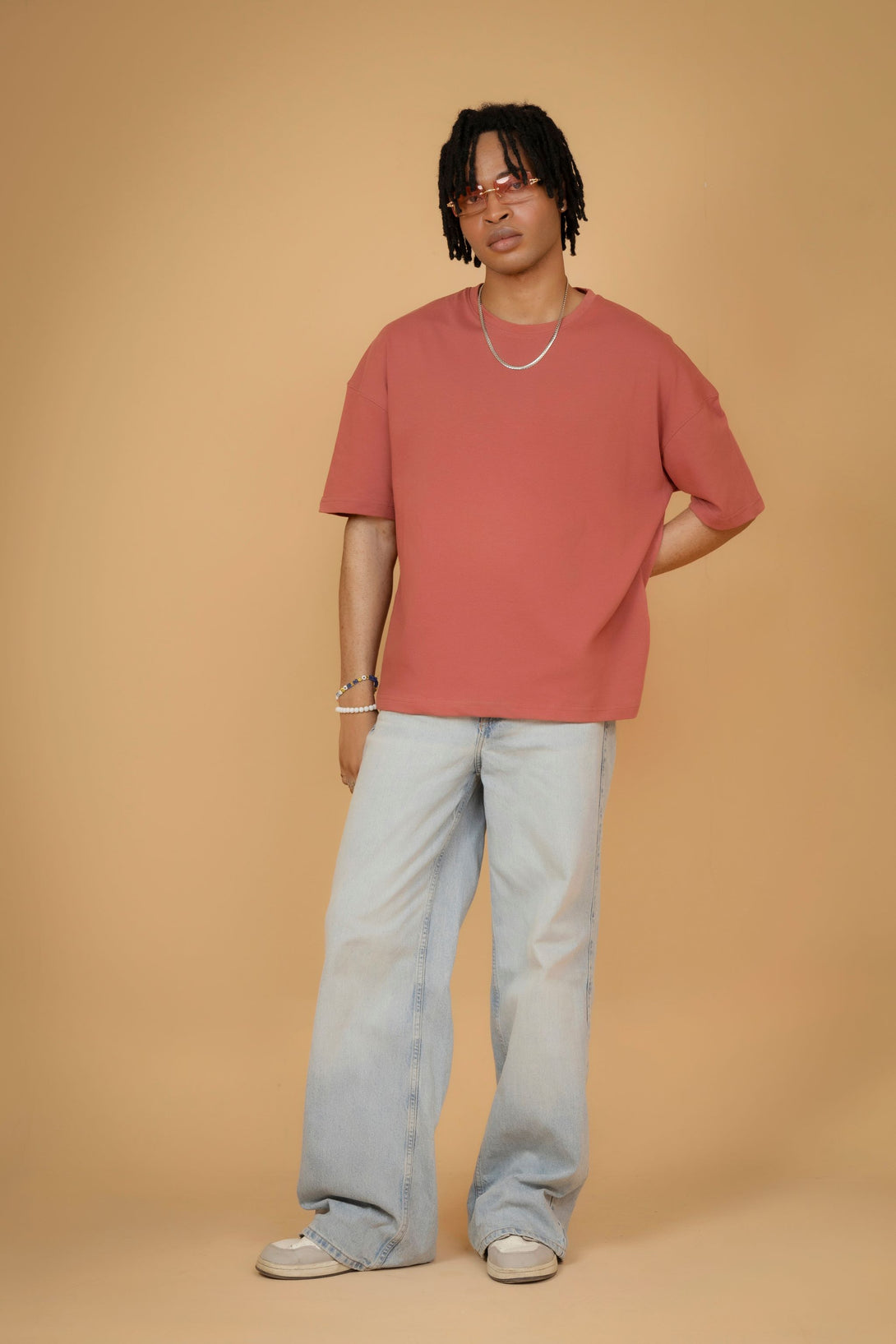 Style & Fit: Men's short-sleeved T-shirt with a crew neck. It has an oversized or relaxed fit with prominent dropped shoulders.