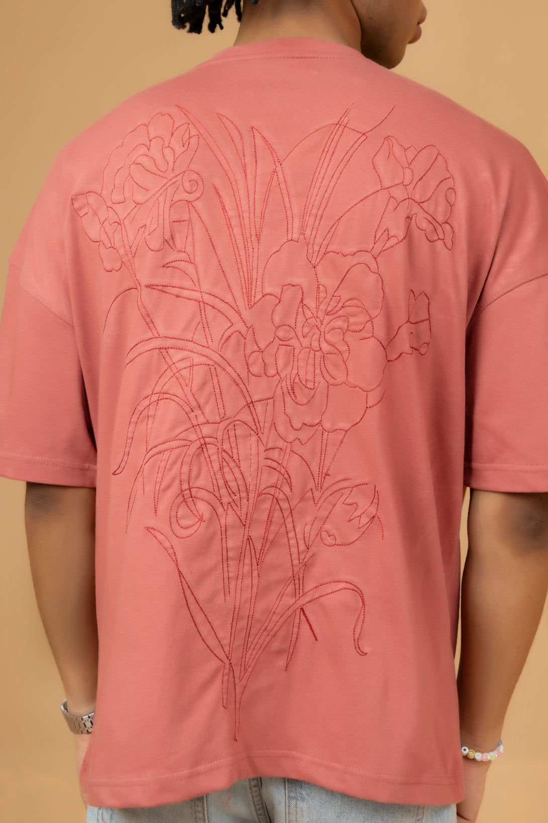 Back Design: Features a large, intricate, tone-on-tone embroidery of a floral bouquet.