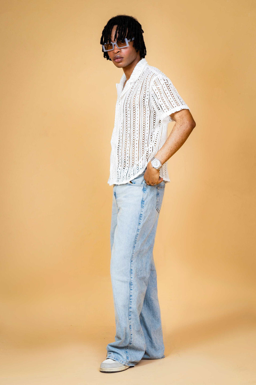 - Features: Our Crochet Shirt featuring a Cuban collar and half sleeves.