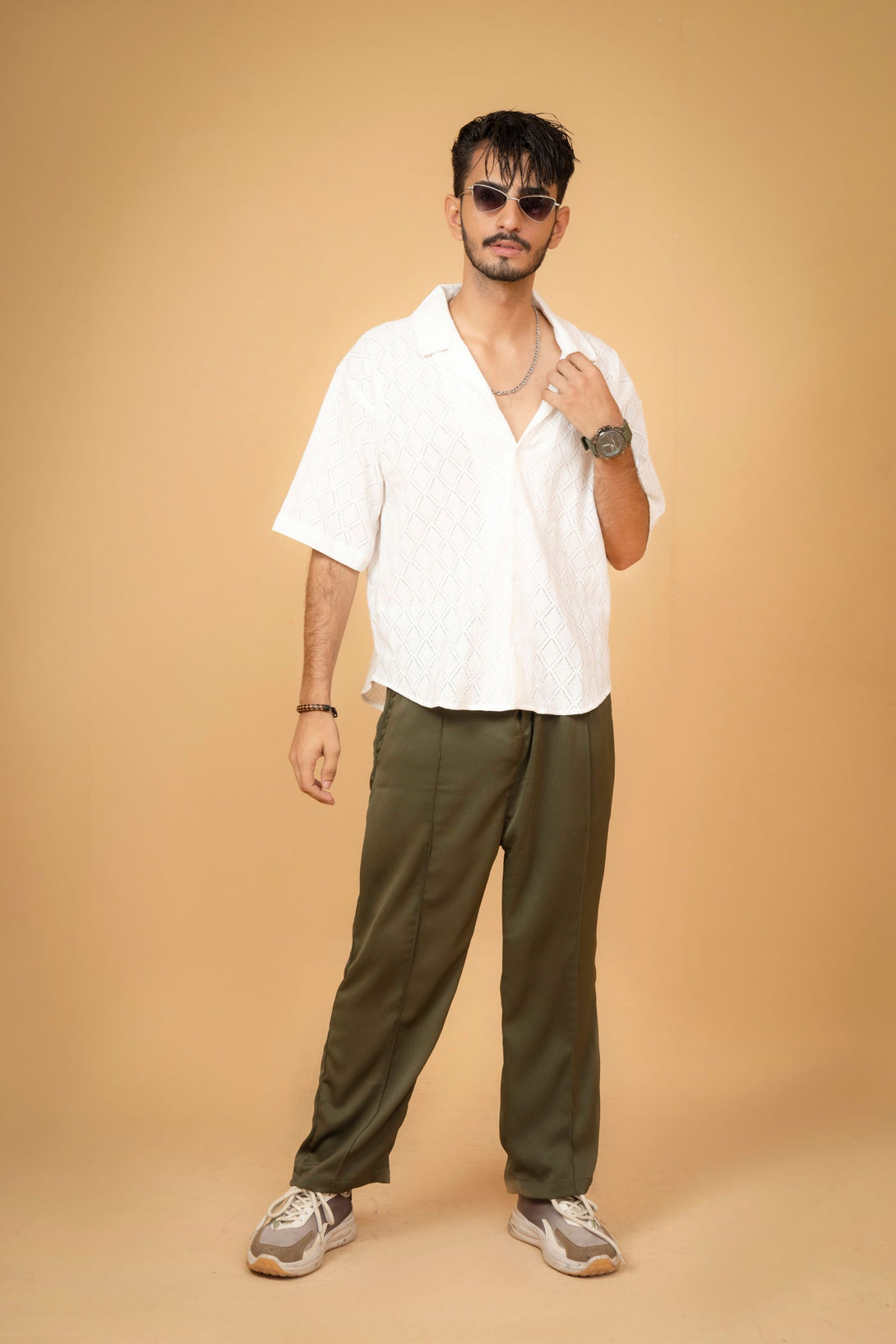 Features: These pants are crafted from Breathable Cotton Stretchable Fabric, providing both style and comfort. The front pintex design that adds a touch of sophistication to your look. The adjustable elastic waist with a drawstring ensures a comfortable and personalized fit, complemented by a secure top button and zip fly. With a wide-leg, relaxed fit, these pants offer both style and ease, making them perfect for any occasion.