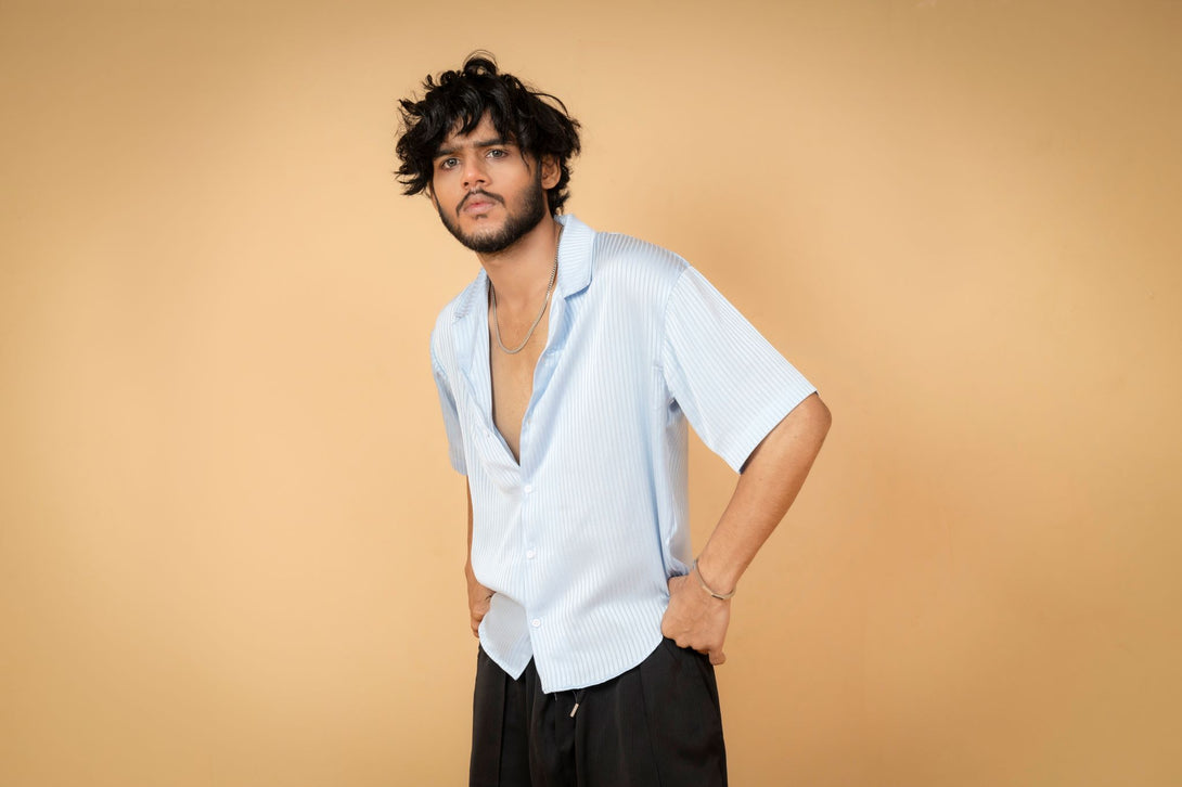 Sleeves: The sleeves are short or half-sleeves, hitting around the bicep.