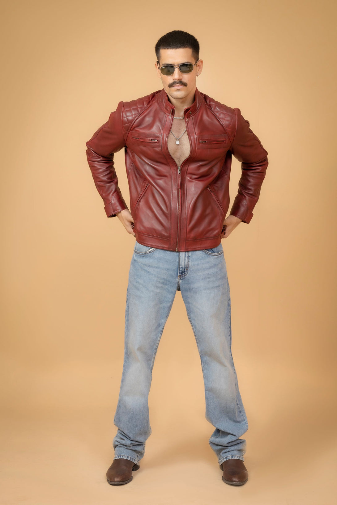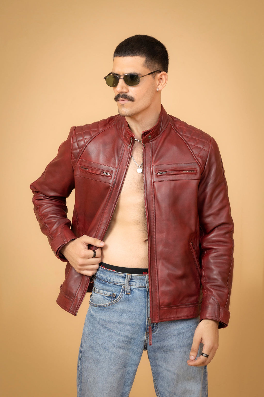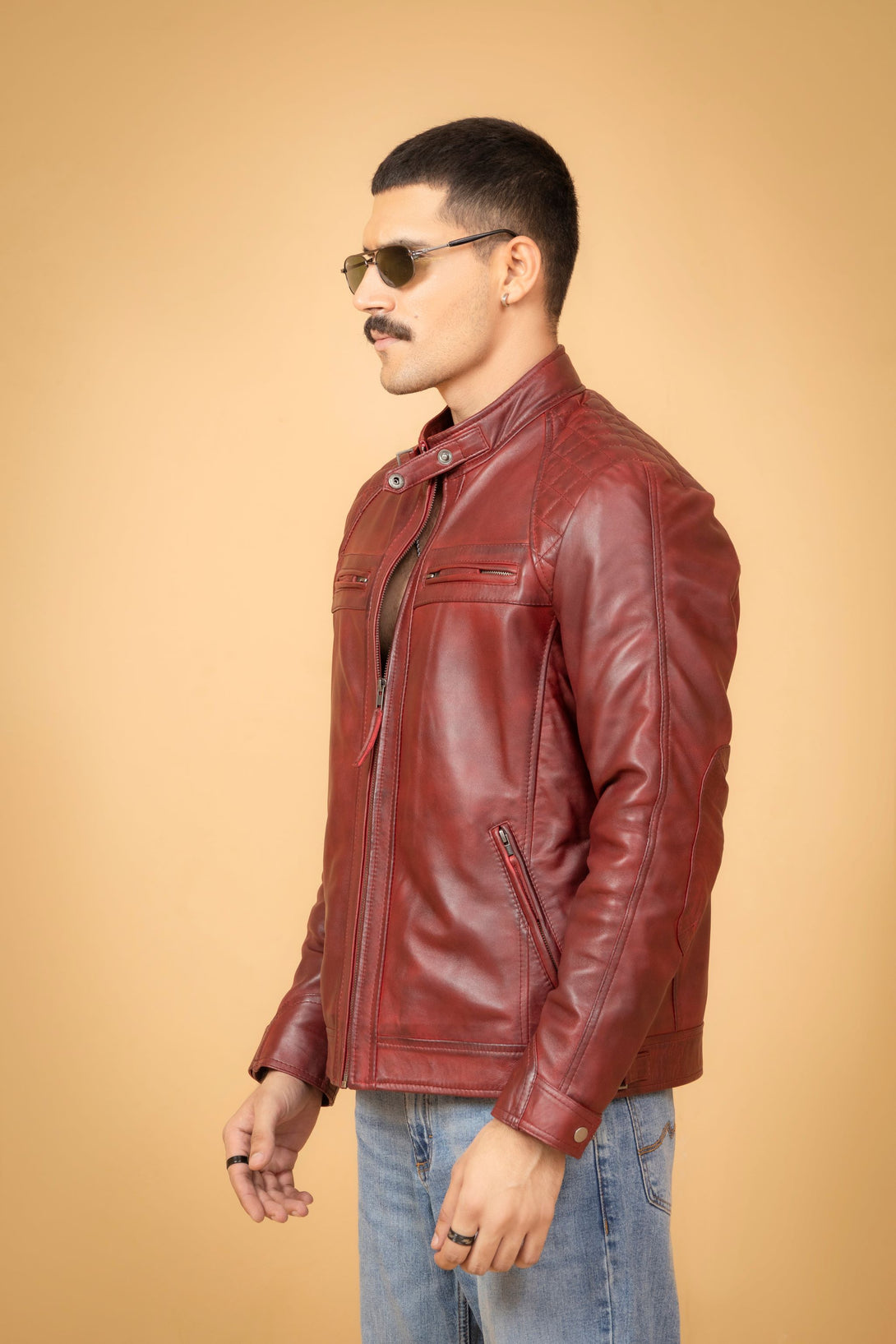 Crafted from premium leather, the Maroon Leather Cafe Racer Jacket offers a sleek, minimalist silhouette designed for both style and function. Its rich maroon color adds a distinctive edge, while the streamlined fit ensures comfort and mobility. Ideal for riders and fashion enthusiasts alike, this jacket combines durability with a timeless appeal, making it a versatile addition to any wardrobe.