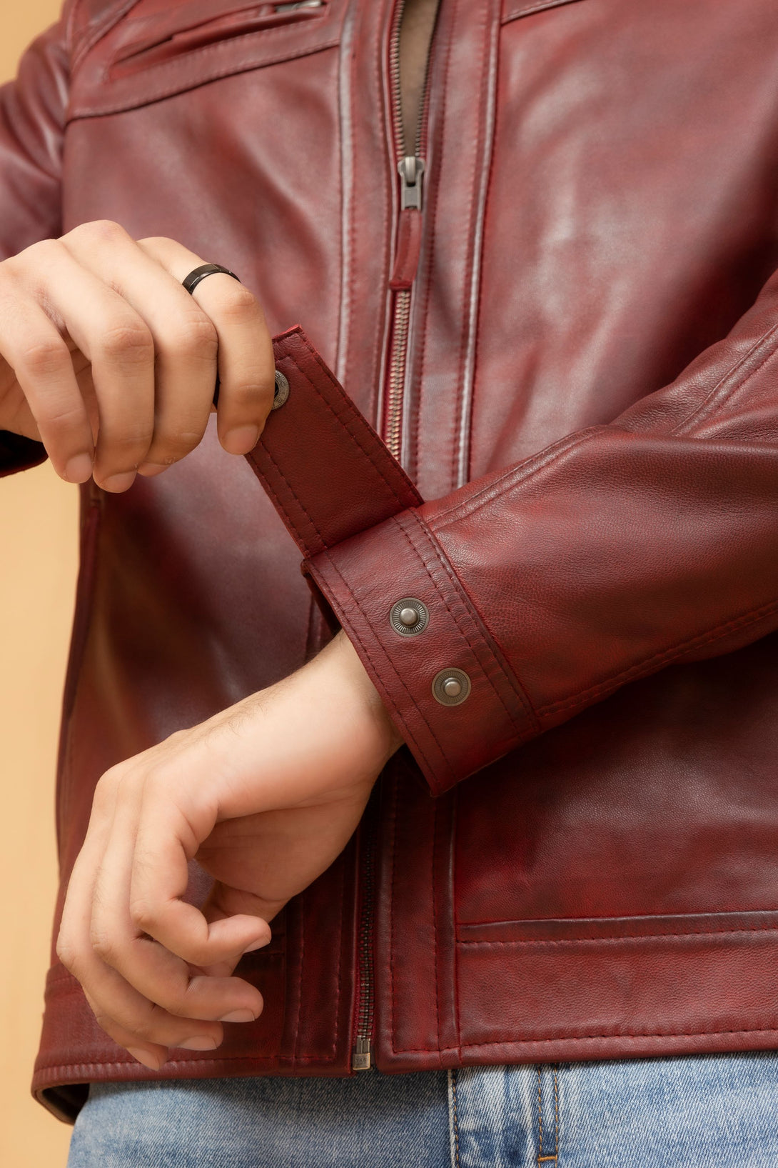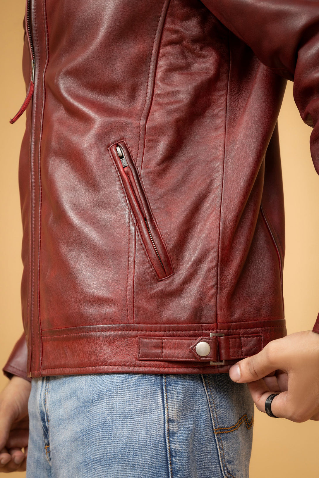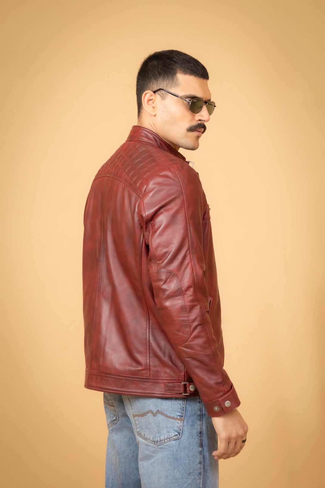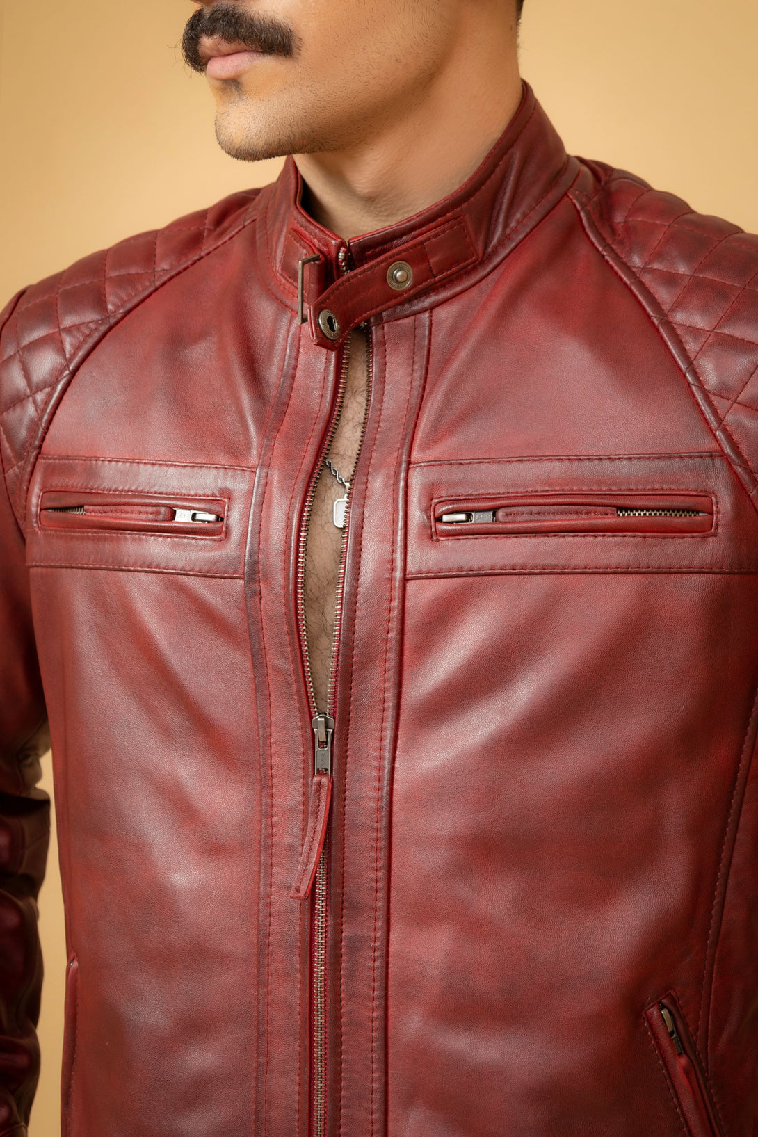 Maroon Leather Cafe Racer Jacket