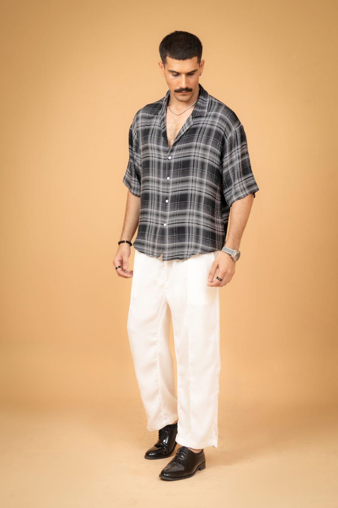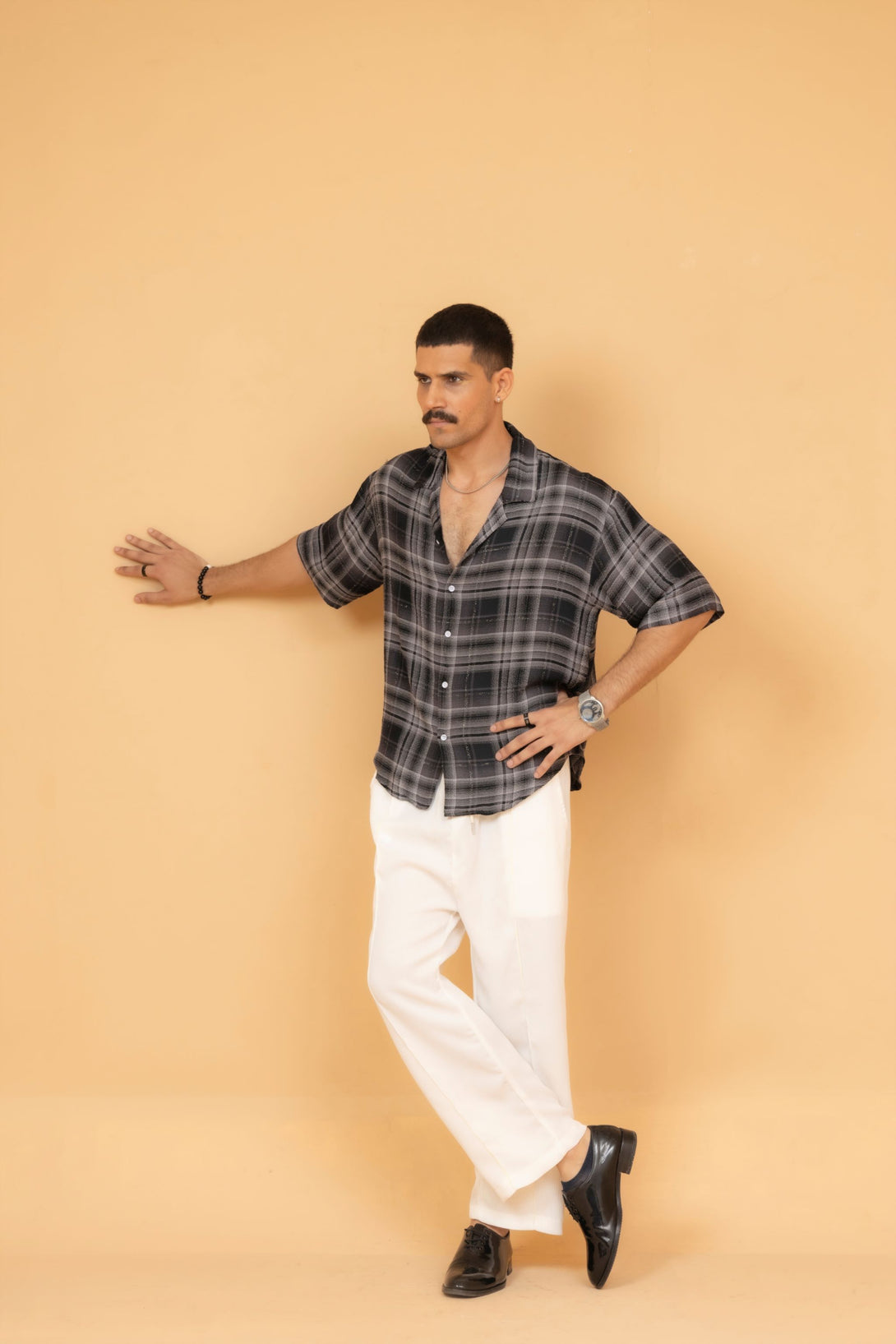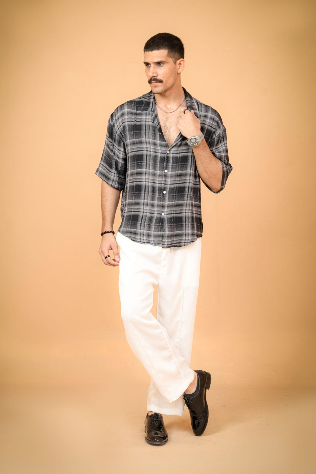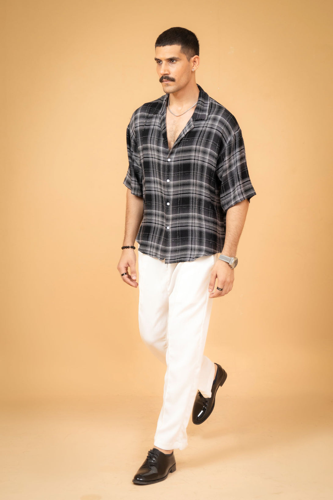 Style: Solid Oversized Pattern shirt featuring a Cuban collar and half sleeves.