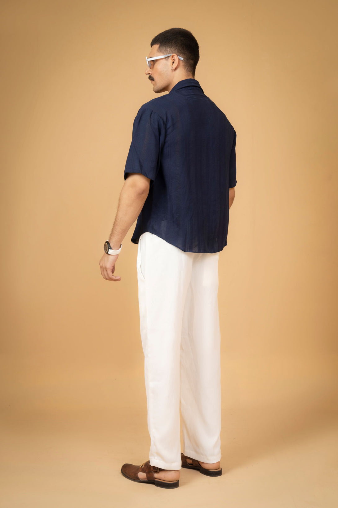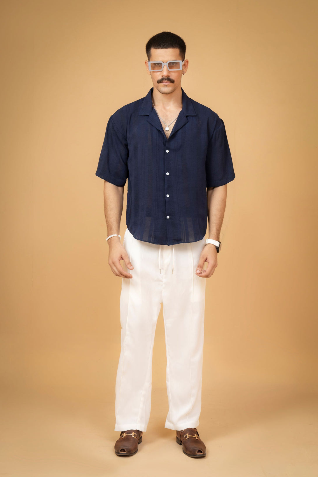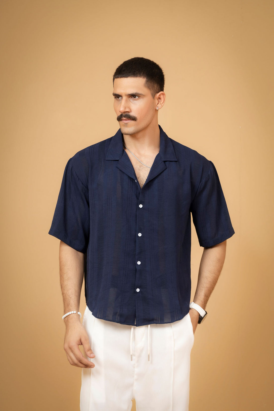 Style & Fit: Men's short-sleeved button-up shirt featuring a casual, open Cuban/Camp collar. It has a relaxed or loose fit.